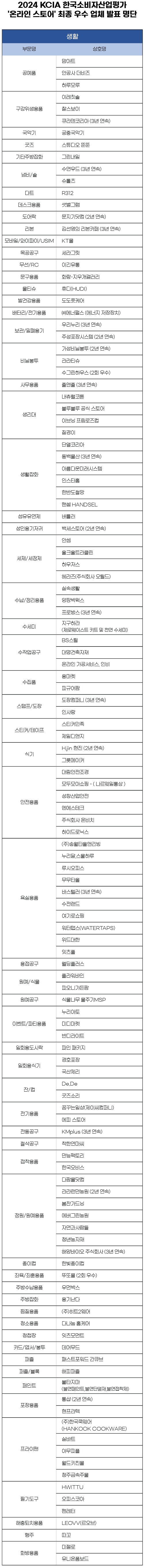 KCA한국소비자평가는 대한소비자협의회가 주최하고 한국소비자평가가 주관하는 <2024 KCIA 한국소비자산업평가 ‘온라인 스토어’> 생활 분야의 평가 결과를 발표했다.